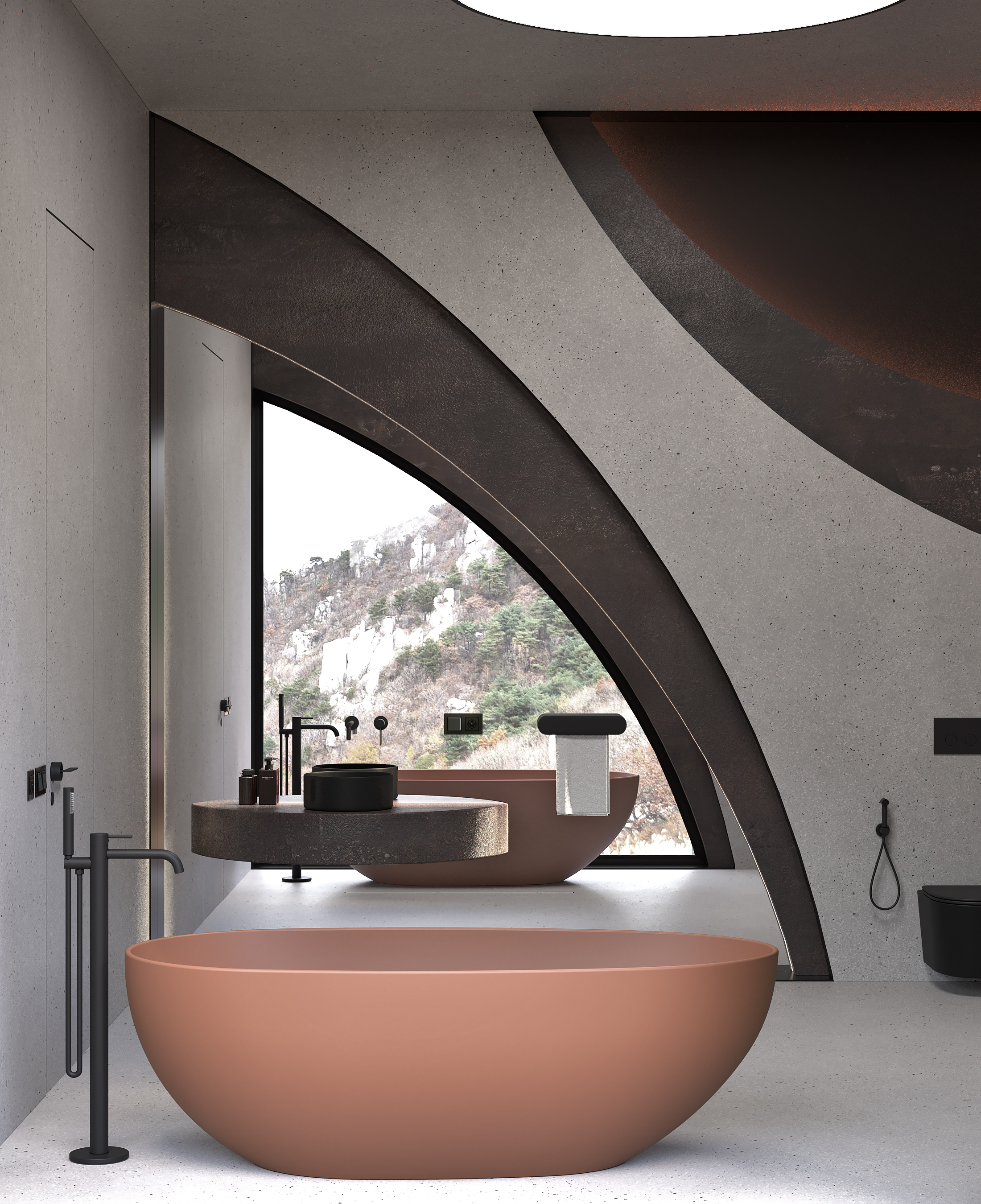 В такой ванной комнате можно легко отключиться от внешнего мира и погрузиться в особую атмосферу.